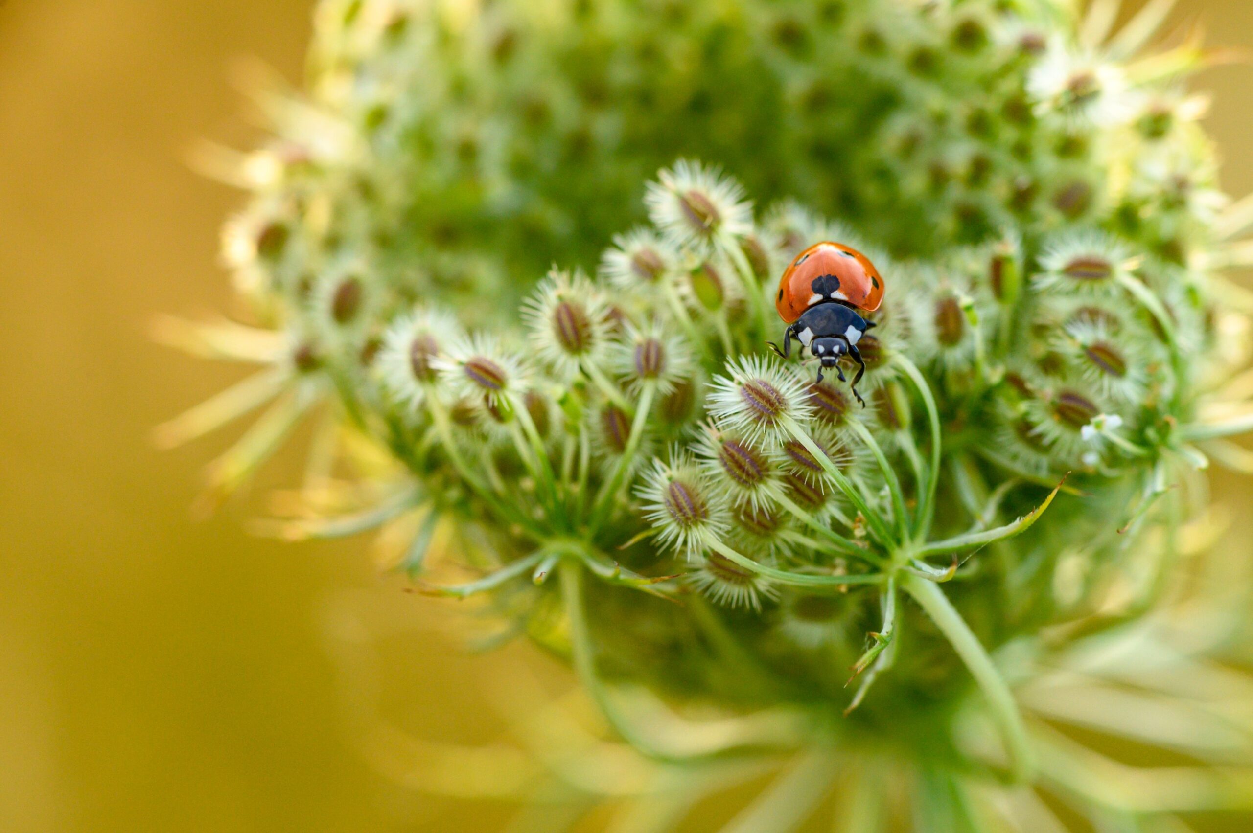 Fraai licht en een mooie compositie met het lieveheersbeestje op tweederde van de breedte.