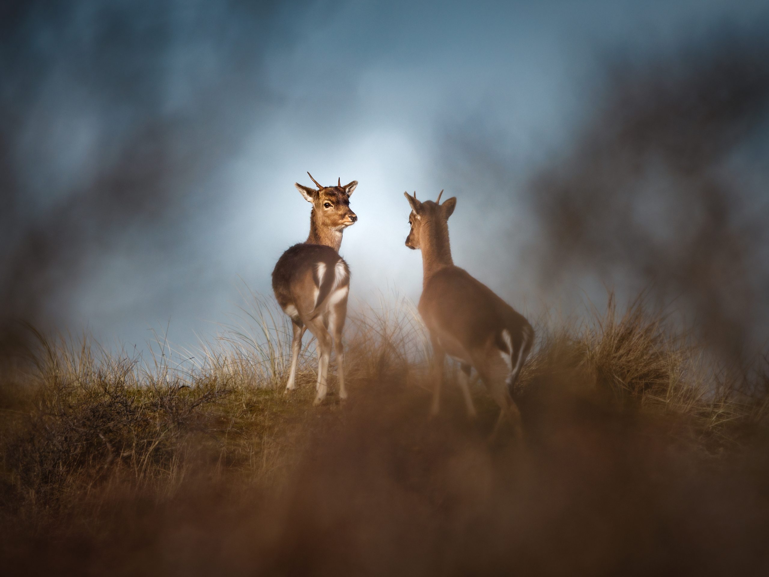 “Deze foto van twee damherten in de duinen is op een zondag in januari rond het middaguur in de Amsterdamse Waterleidingduinen gemaakt”, vertelt de Jonge. “Dit natuurgebied stond al enige tijd op mijn verlanglijstje en omdat het nogal ver van mijn woonplaats in Noord-Limburg ligt, maakten mijn man en ik er een weekendje van. Het weer was fris en helder.”