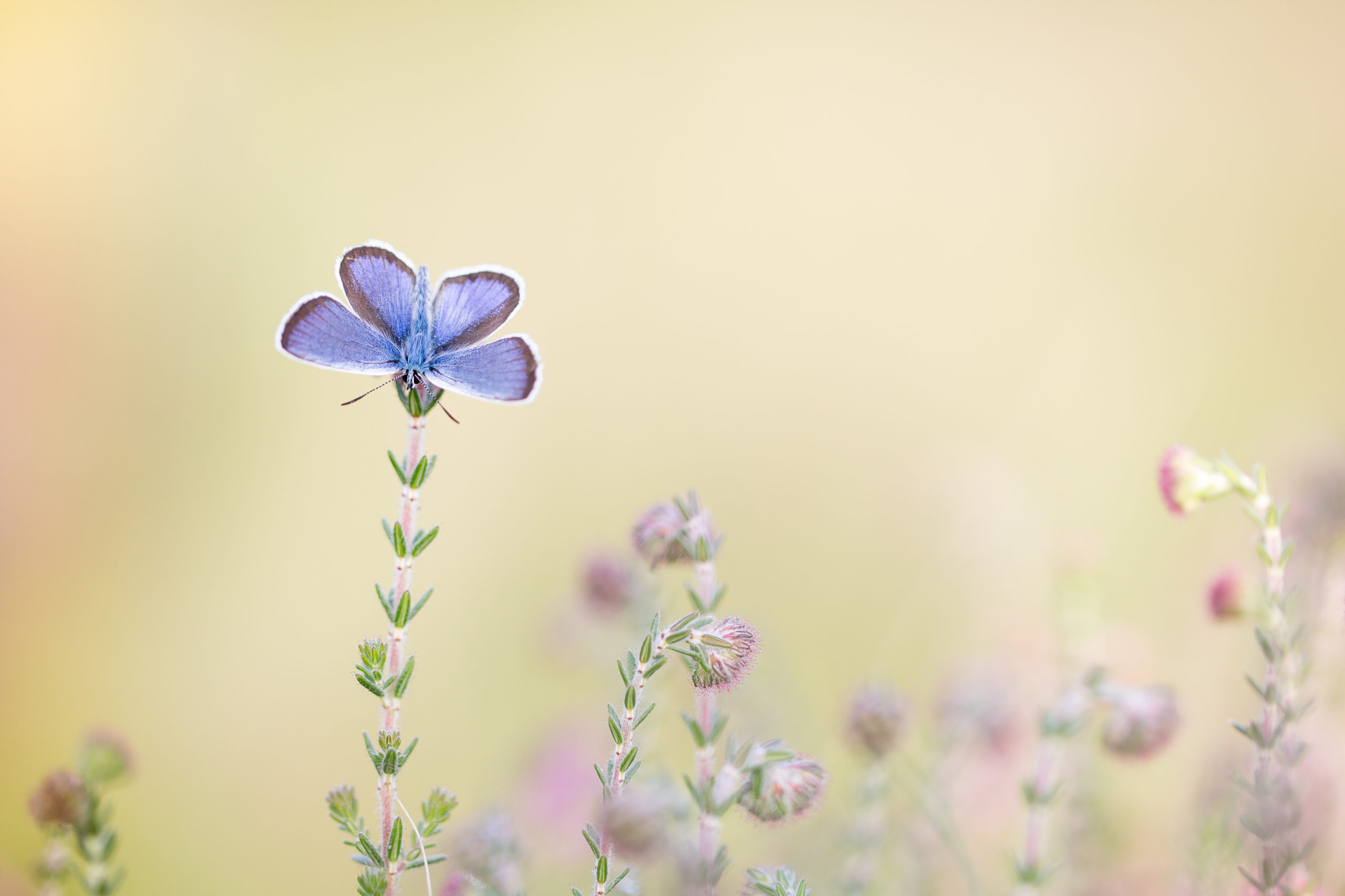 Heideblauwtje op dopheide. Eén van de mooiste bewoners van de heide, zo ziet hij eruit met opengeslagen vleugels. Foto: Judith Borremans