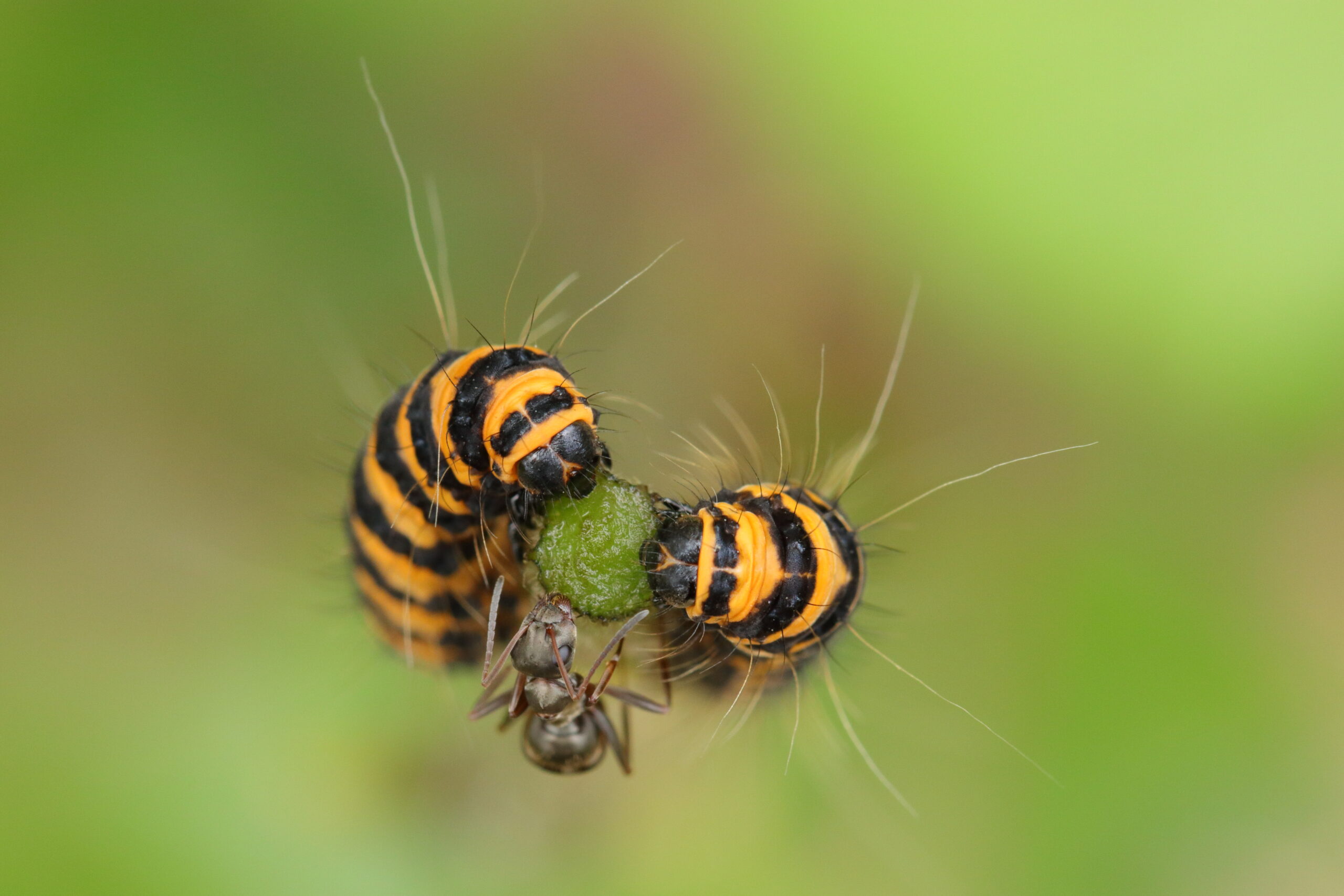 Deze schitterende foto van twee rupsen en een mier is de Roots Foto van de Maand april. De fotograaf is Jacqueline Gerhardt. Dit is haar verhaal achter de foto.