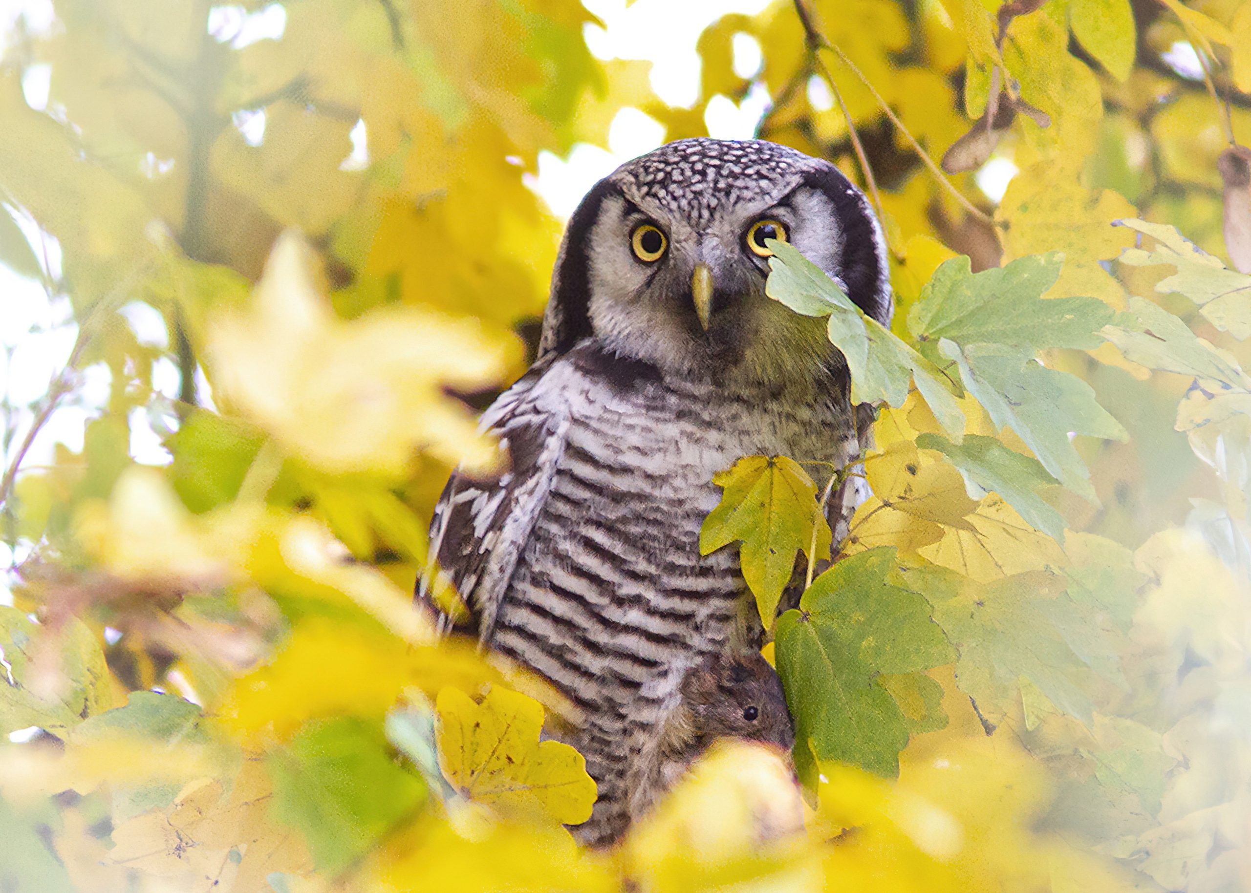 De ogen van de sperweruil zijn opvallend geel