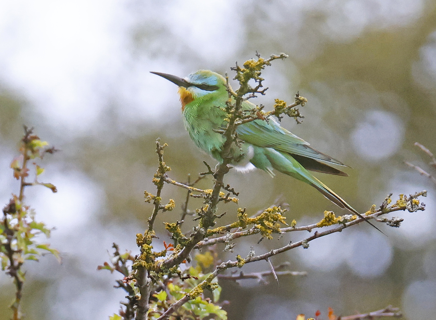 De groene bijeneter behoort tot de mooiste vogels die ooit in Nederland als dwaalgast zijn vastgesteld. De soort broedt ver weg, in Afrika en Azië. Gister ontdekte Rutger Rotscheid de zesde vogel tot nu toe, en die liet zich de hele dag mooi bewonderen in de Amsterdamse Waterleidingduinen. Tot grote vreugde van veel toegesnelde vogelaars.