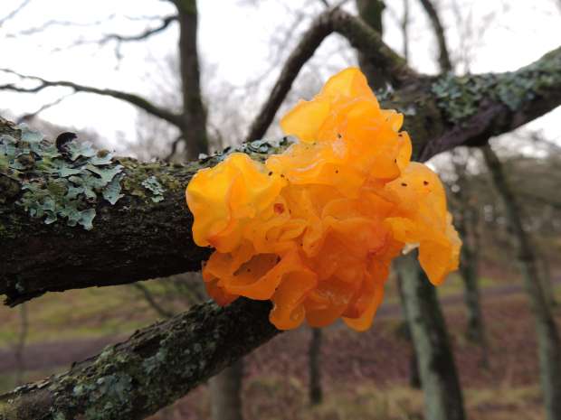 Juist tijdens deze donkere dagen in december is kleur in het bos schaars. De gele trilzwammen op de eiken springen dan ook meteen in het oog. Als grote gerimpelde gomballen hangen ze aan de dode takken. Het vruchtlichaam, tot wel 10 cm groot, bestaat uit geleiachtige lobben. Het voelt glad aan en is verrassend veerkrachtig. En zelfs na een beetje nachtvorst blijft hij lekker zacht, alsof er een natuurlijk antivries in zit. Sommige exemplaren zijn overigens niet geel maar opvallend knaloranje.