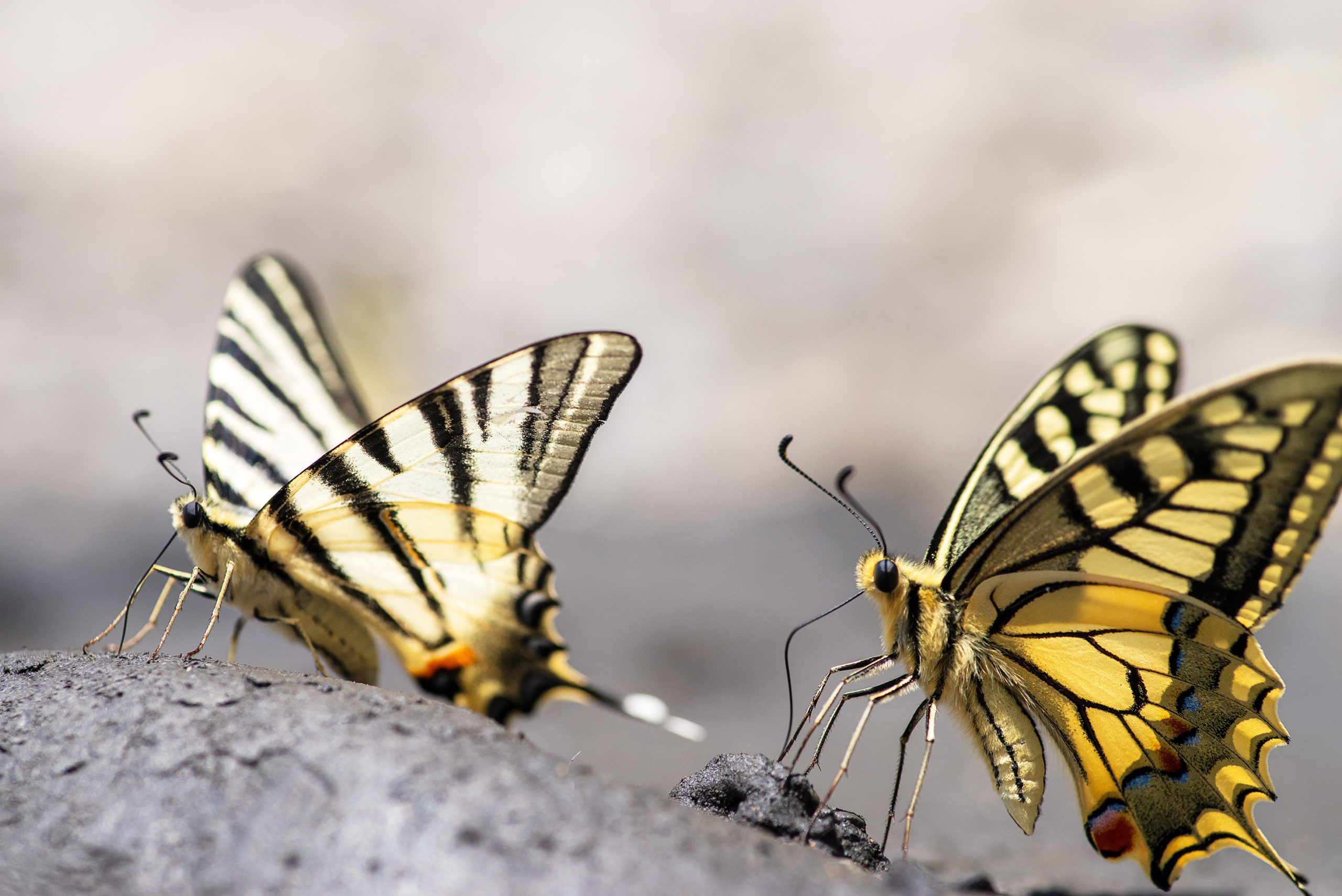 Op de camping zelf, gelegen op 1.500 meter, krioelt het van de vlinders. Dambordjes, Boswachters en Parelmoervlinders in soorten en maten, ik moet ze één voor één de tent uit jagen. Maar veel foto’s heb ik er niet van gemaakt. Doordat het bergmeertje bij de camping ook op zo’n 1.500 meter ligt, is het vaak ‘net lekker’ genoeg om in te zwemmen. Maar vaak dalen we ook af naar het grote stuwmeer om daar een afgelegen strandje op te zoeken. Tijdens het bezoek van zo’n strandje roept mijn zoon ineens  ‘hé, papa, wat zijn dat?!’ Aan de overkant van het stroompje zie ik tot mijn verbazing niet één, niet twee, maar een hele familie koningspages. Ik kijk nog eens goed en zie dat ook de vrouwen des huizes, de koninginnenpages zijn aangesloten. Ze doen zich en masse tegoed aan de mineralen die beschikbaar zijn gekomen in het drooggevallen slijk. Ik grijp mijn camera, waarop uiteraard mijn macrolens bevestigd zit. De brandpuntsafstand 100 millimeter is nu eenmaal ook een prachtige portretlens!