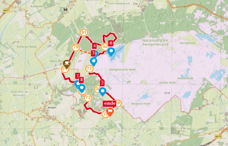 Roots heeft een wandelroute uitgezet over de Dwingeloose Heide en de Anserdennen in het Drentse nationale park Dwingelderveld. De route start bij het bezoekerscentrum Dwingelderveld. De wandelroute is 14,3 km. Je kunt de route ook inkorten naar 9,7 km. De gps-track van de route kun je gratis downloaden.